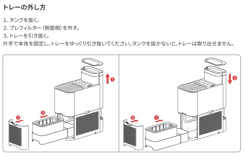 もちろん、給水タンクは取り外し可能なので、洗面台などに持っていっての給水も可能です。