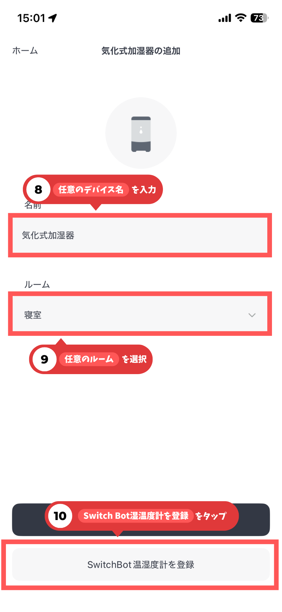 その後、「⑩Switch Bot湿温度計を登録」をタップします。