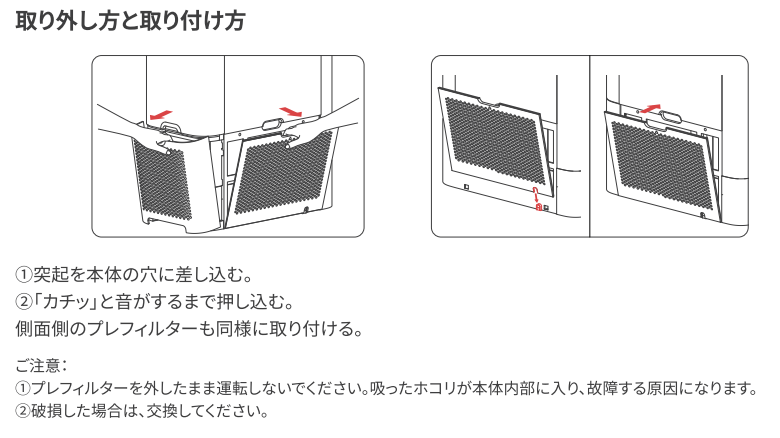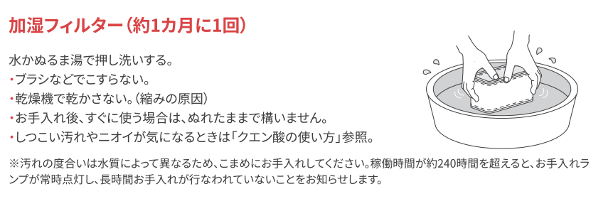 フィルターは定期的に洗浄が必要ですが、自動乾燥機能がありカビにくい設計です。
