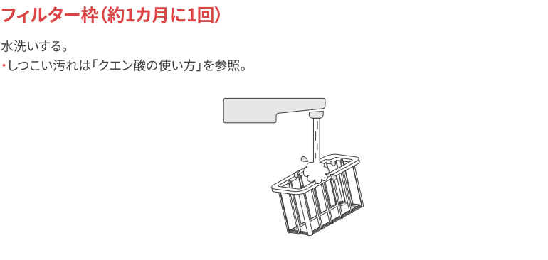 1ヶ月に1度、掃除機などで汚れを取って、水洗いをします。