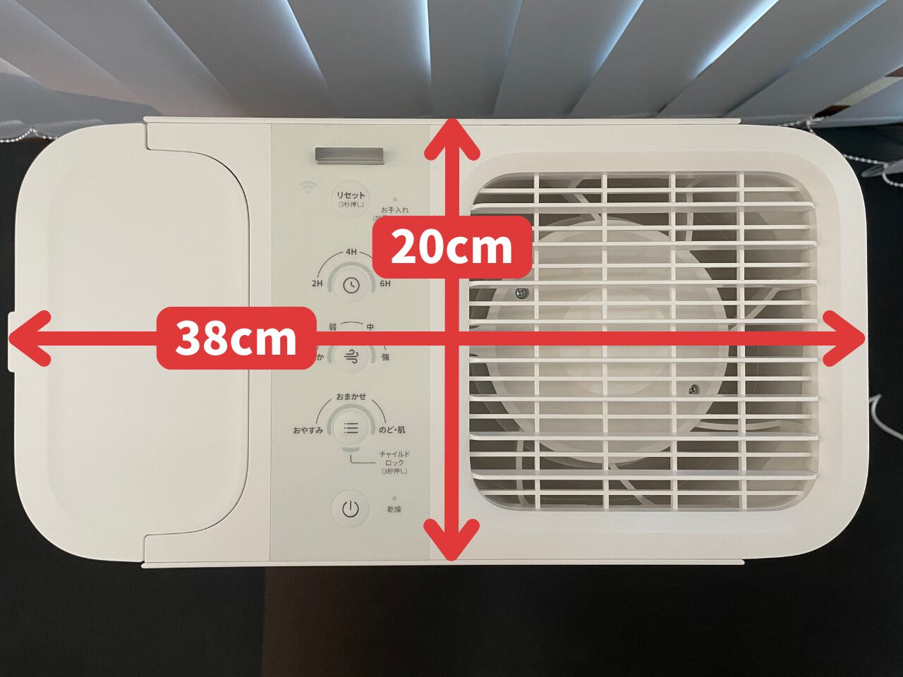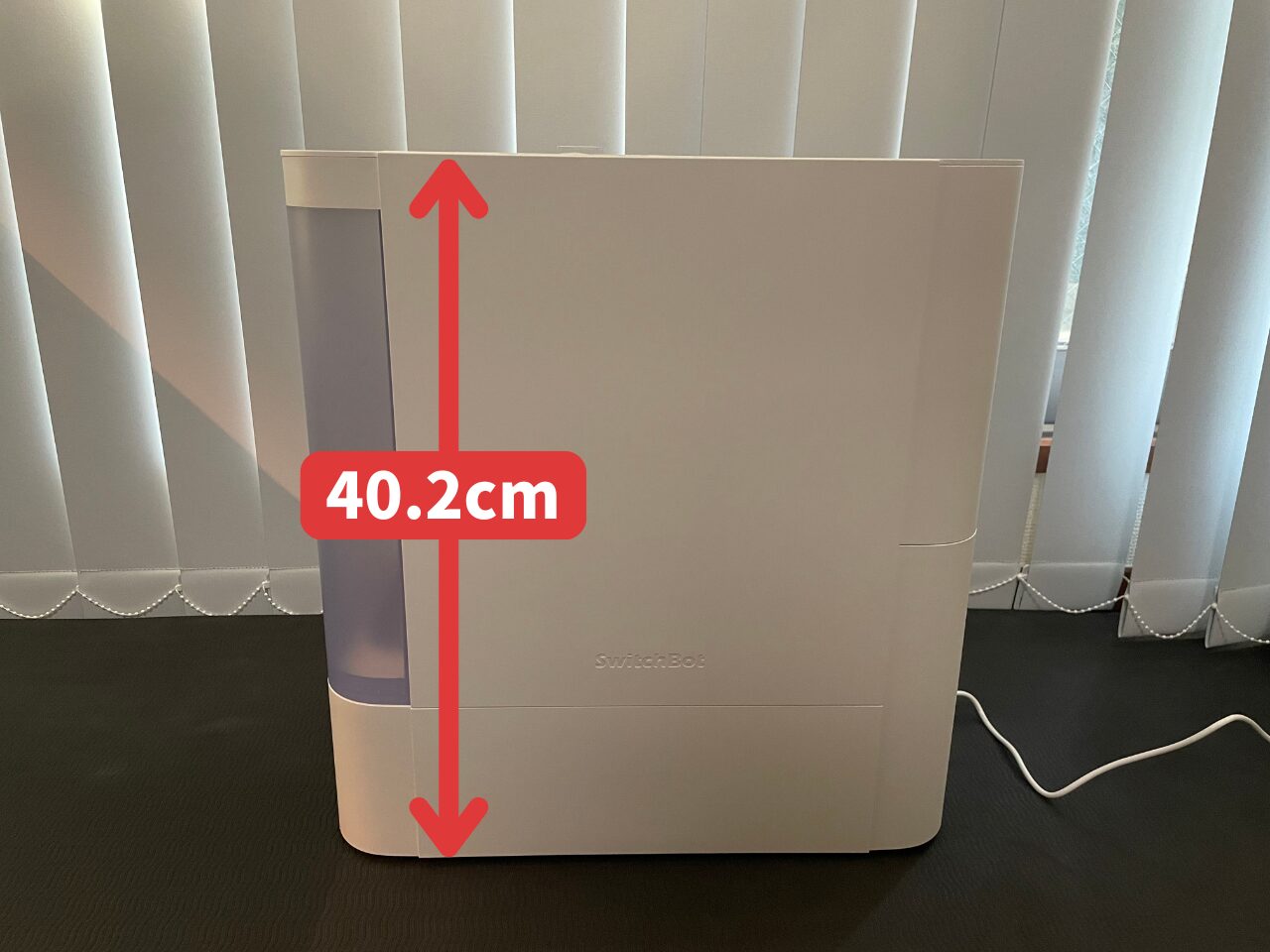 SwitchBot 気化式加湿器本体の大きさは、38cm×20cm×40.2cmです。