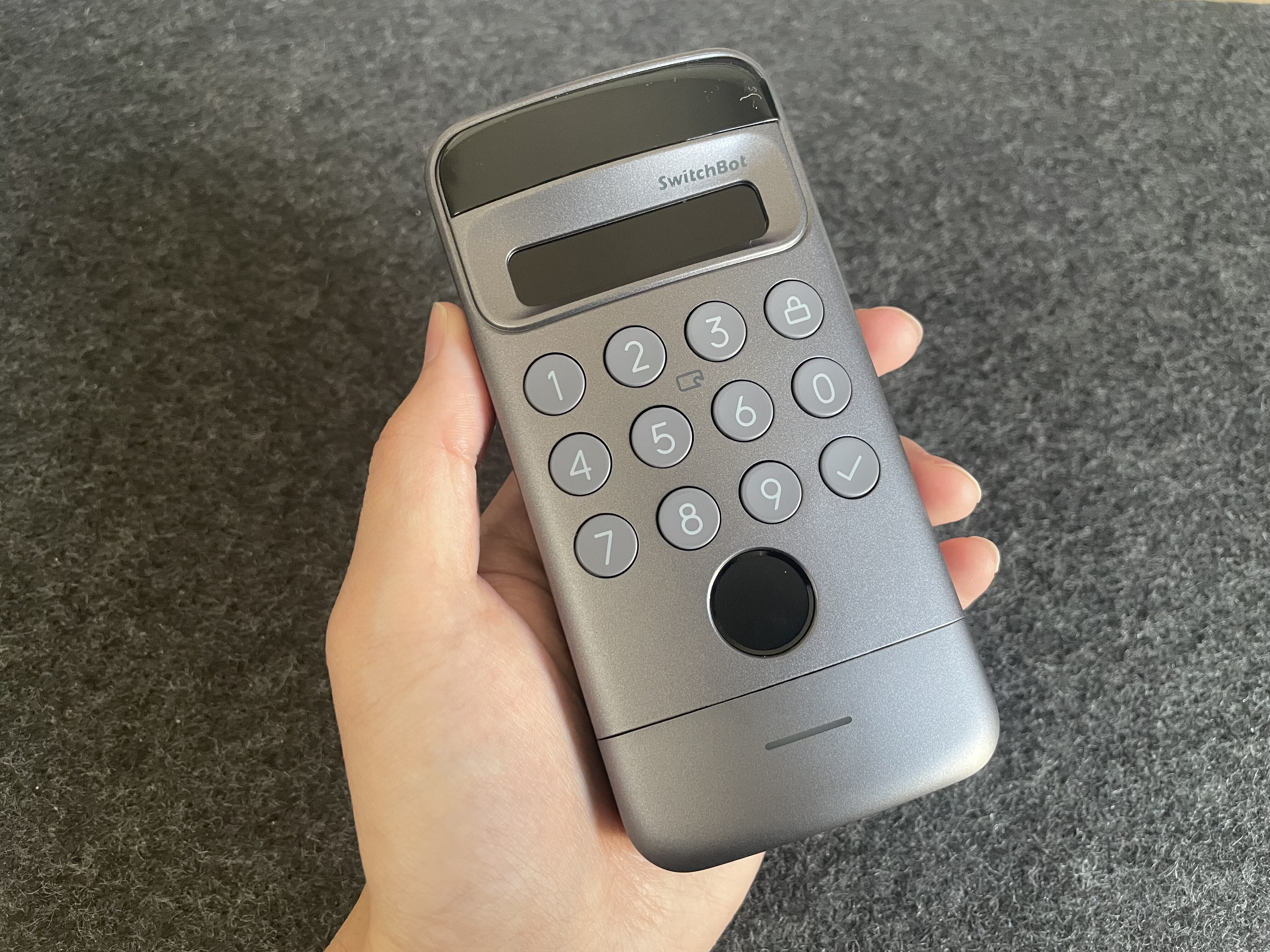 SwitchBot 指紋認証パッドは、顔認証非対応で、電池式のシンプルモデルです。