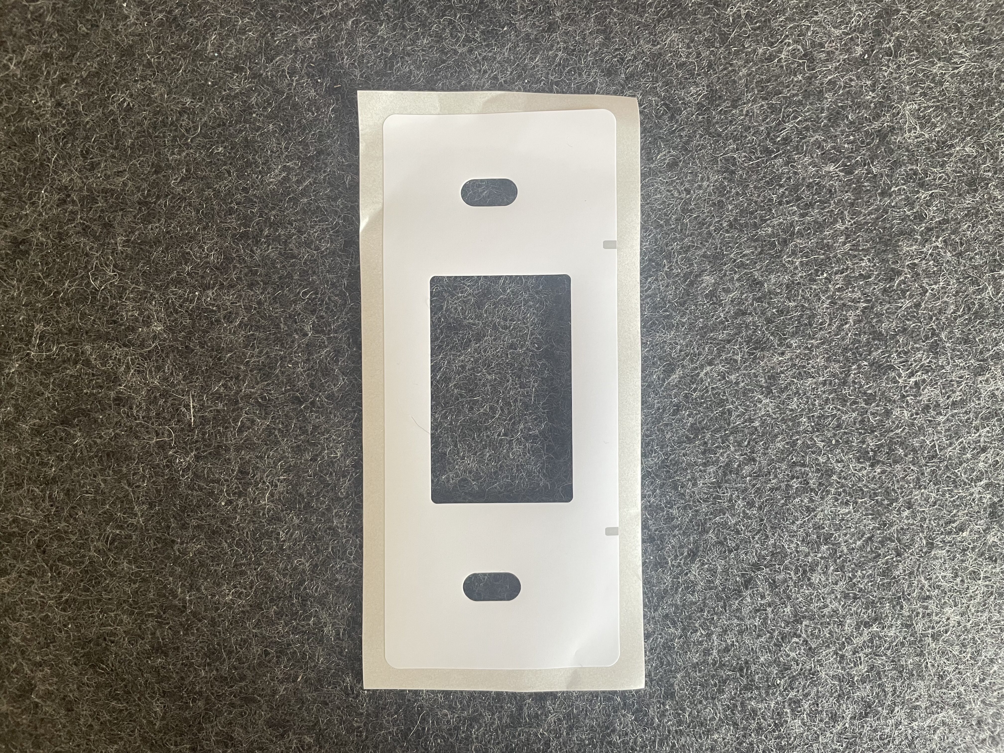 貼り付け位置を決めるためのガイド(型紙)として使うステッカーです。水平位置や高さをズレにくくする目的で使います。両面テープ固定でもネジ固定でも、位置決めの精度を上げる役割です。