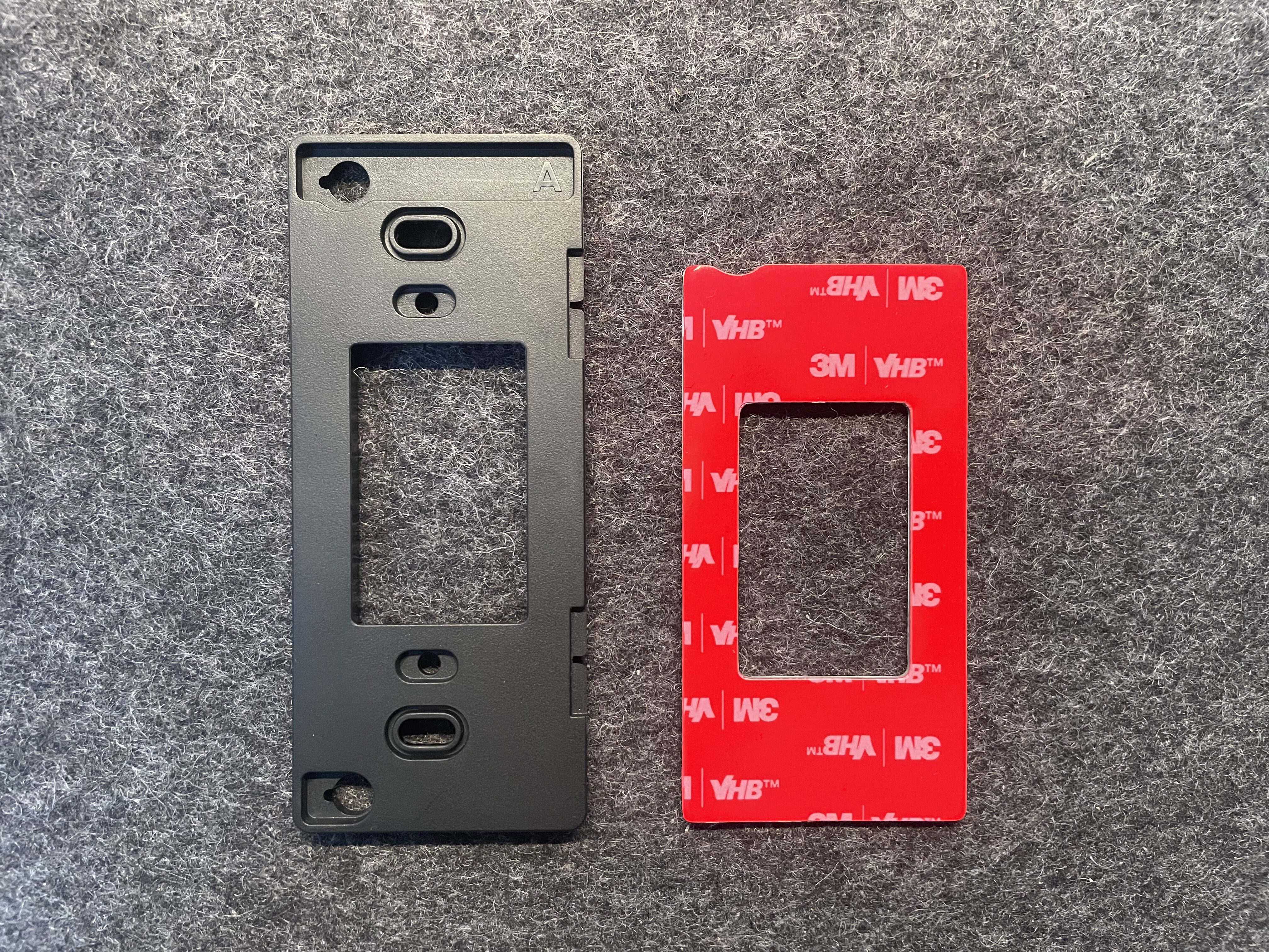 ネジ穴を開けたくない場合に使う固定用テープです。貼り付け位置を決めたら、一度貼ると剥がし直しが難しいため、仮当てして位置決めしてから貼るのが安全です。A/Bは取り付けプレート側と本体側など、貼る箇所に合わせて用意されています。