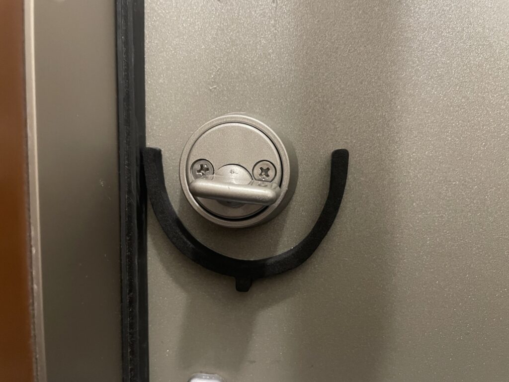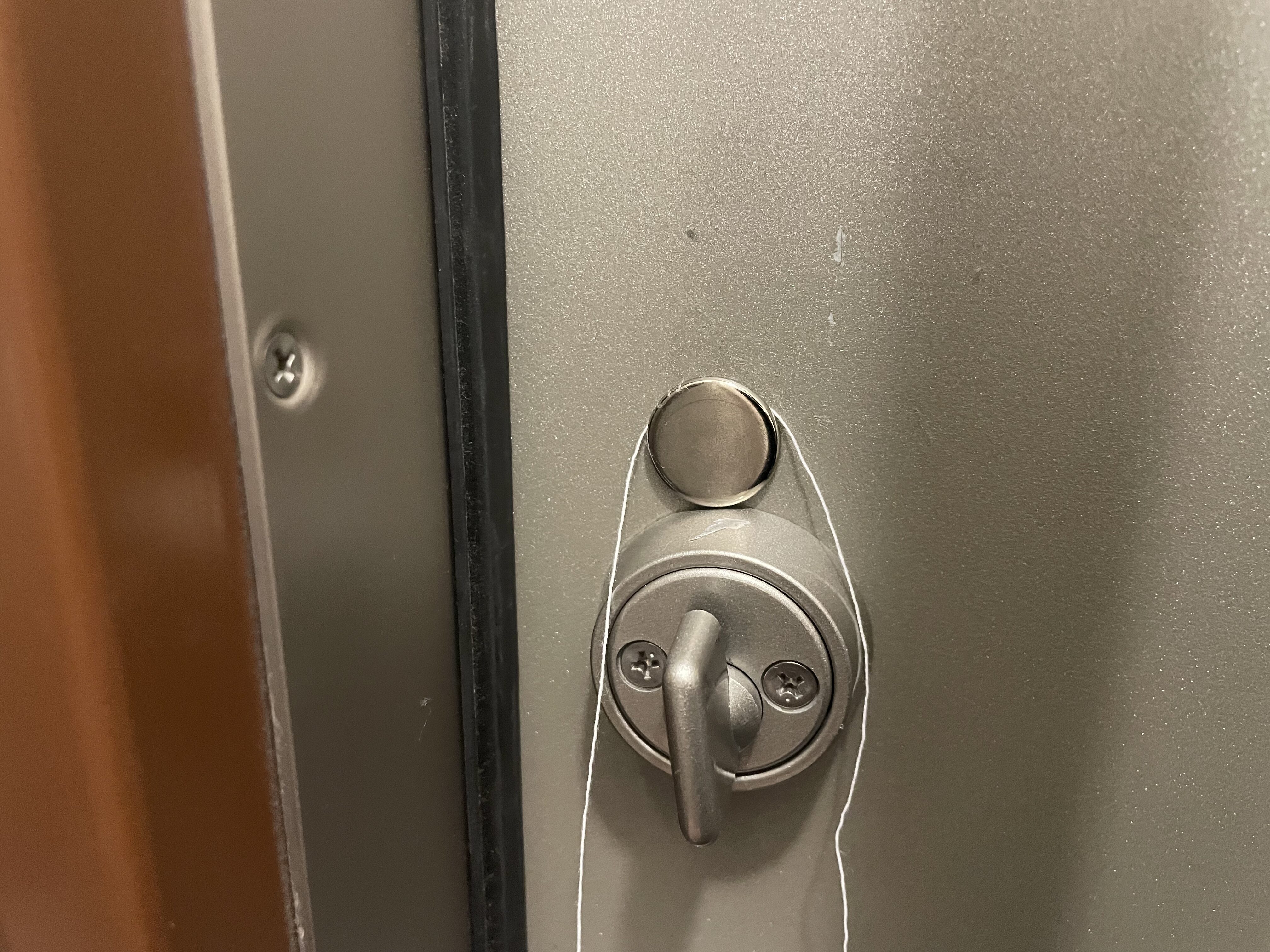 上から見ると、マグネットの厚みでロックUltraとドアの間にわずかな隙間ができていました。