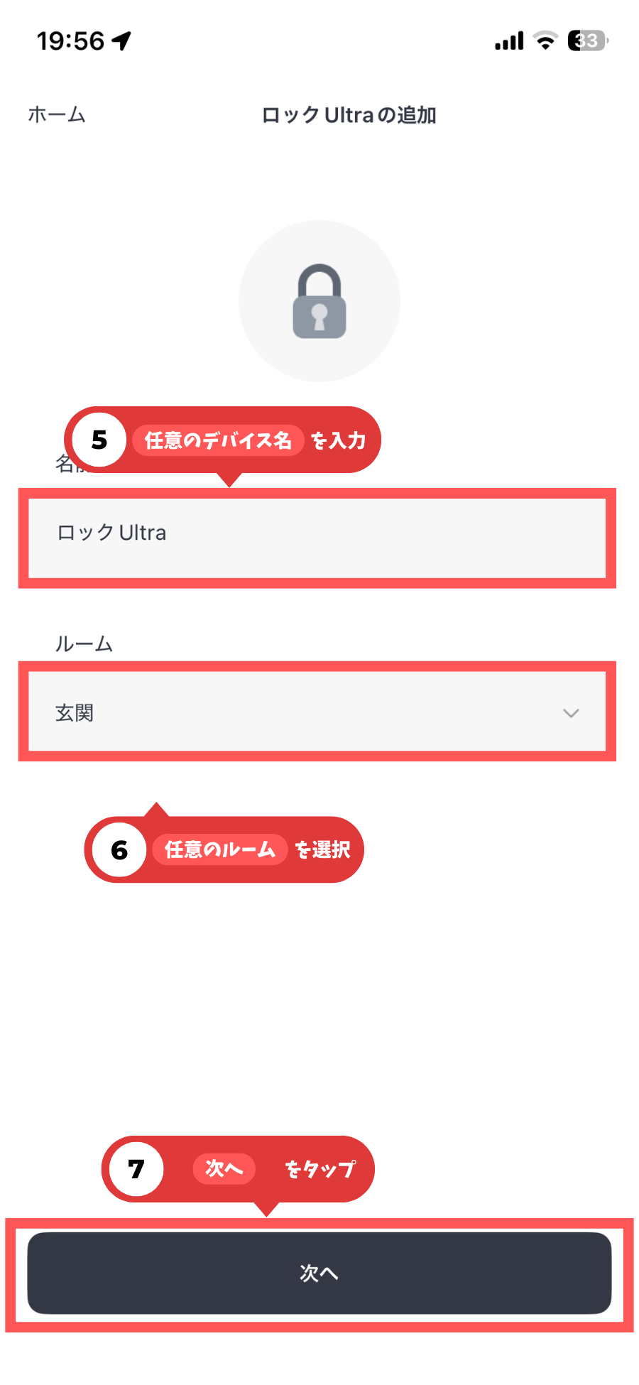 その後、⑦「次へ」をタップ